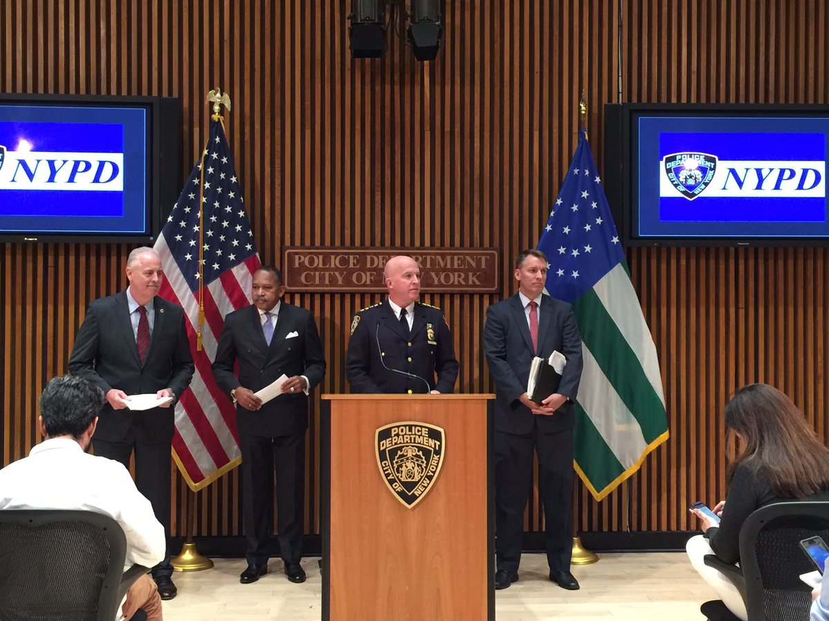 #HappeningNow: @NYPDChiefofDept updates media & NYers about recent gang takedowns making NYC saferpic.twitter.com/eXLG4WIs5V