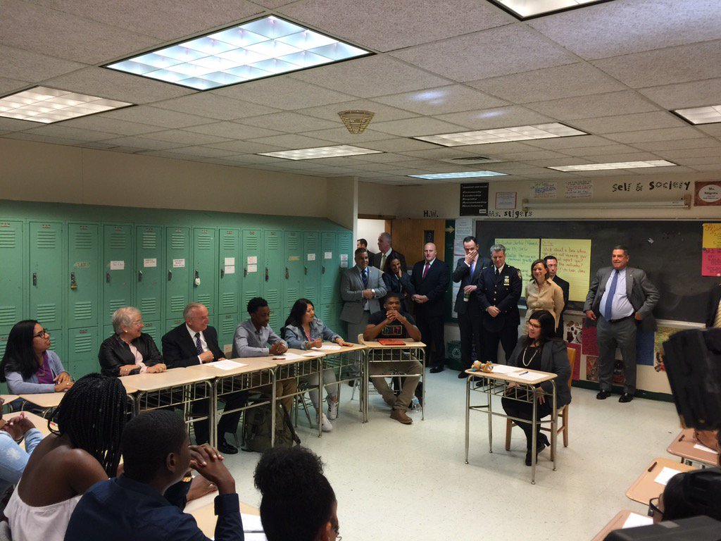 #Now: @CommissBratton & @NYCschools Commissioner Farina sitting in on a restorative circle during a class.pic.twitter.com/k6aylABihF