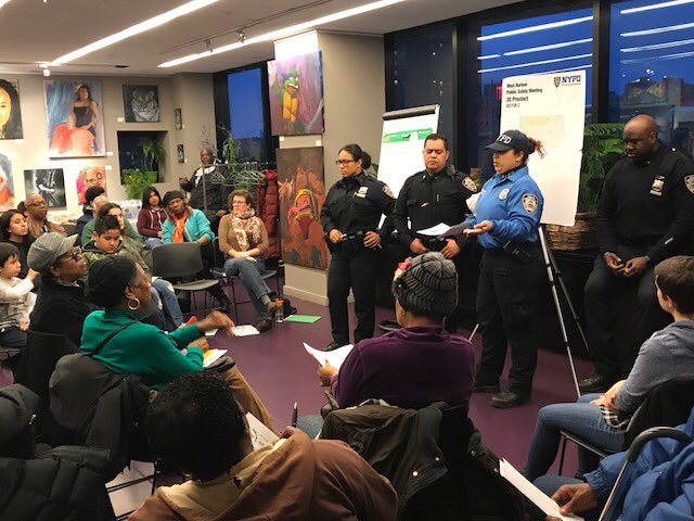 Get involved in your #community! Increase your awareness of your surroundings & be another set of eyes to look out for your neighbors. Get to know your local #NYPD police officers #neighborhoodpolicing @NYPD30Pct officers sharing important info in #Manhattan