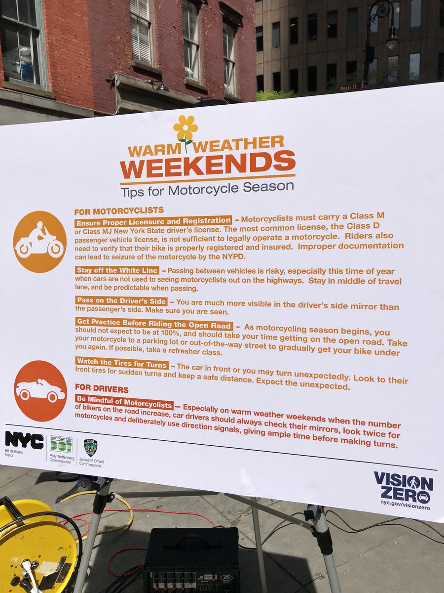 #VisionZero is about saving lives. Here are a few reminders for motorcyclists out on our roads: keep a safe distance, pass on the driver’s side, stay off the white line, and watch the tires for turns.pic.twitter.com/py5ncZY9T1