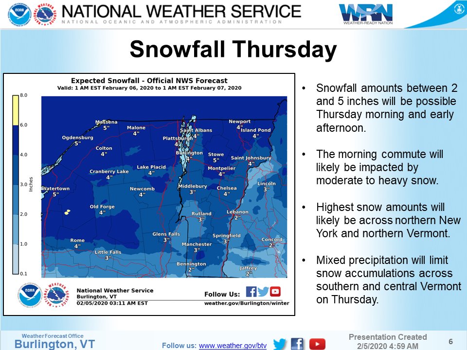 A long duration, multi faceted storm system will impact the region Thursday and Friday. Winter storm watches have been issued portions of Vermont and northern New York. Winter weather advisories have been issued for southern Vermont. See the attached graphics for more detail.pic.twitter.com/wEtBcbcdVU