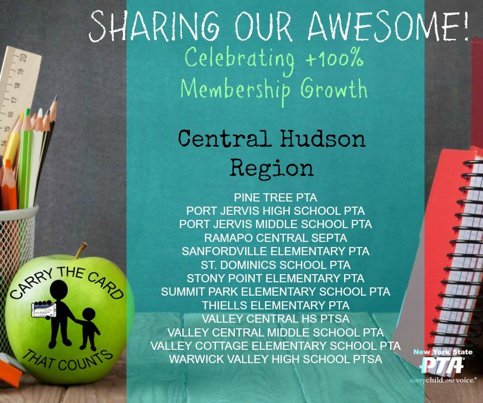 Congrats to these Central Hudson Region units with > 100% membership growth #NYPTA4Kids #NYSPTAAwesomepic.twitter.com/uQpPVRGLR5