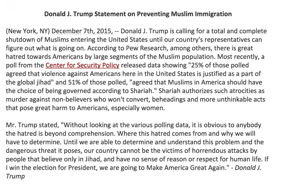 The full @realDonaldTrump statement on “Preventing Muslim Immigration”pic.twitter.com/CF81T05Jca
