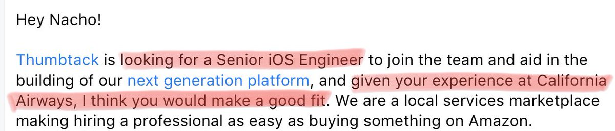 We’re looking for a Senior iOS Engineer, and given your experience as a Flight Instructor, I think you would make a good fit!