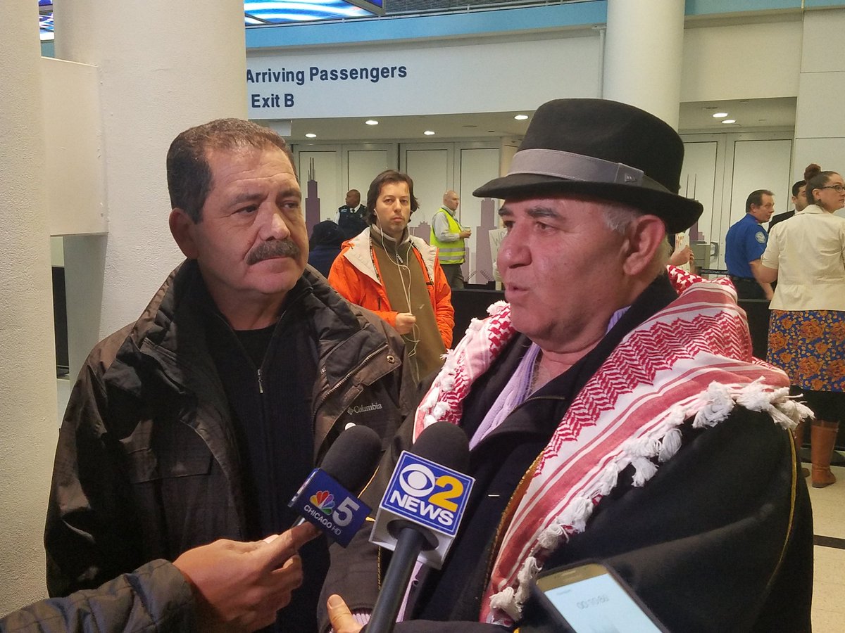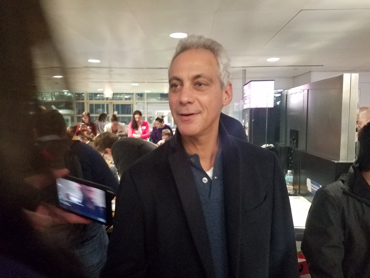 Chicago Mayor Rahm Emanuel comes to O'Hare, thanks lawyers and protesters, promises immigrants are welcome in Chicago.pic.twitter.com/QxjZiQjwqW
