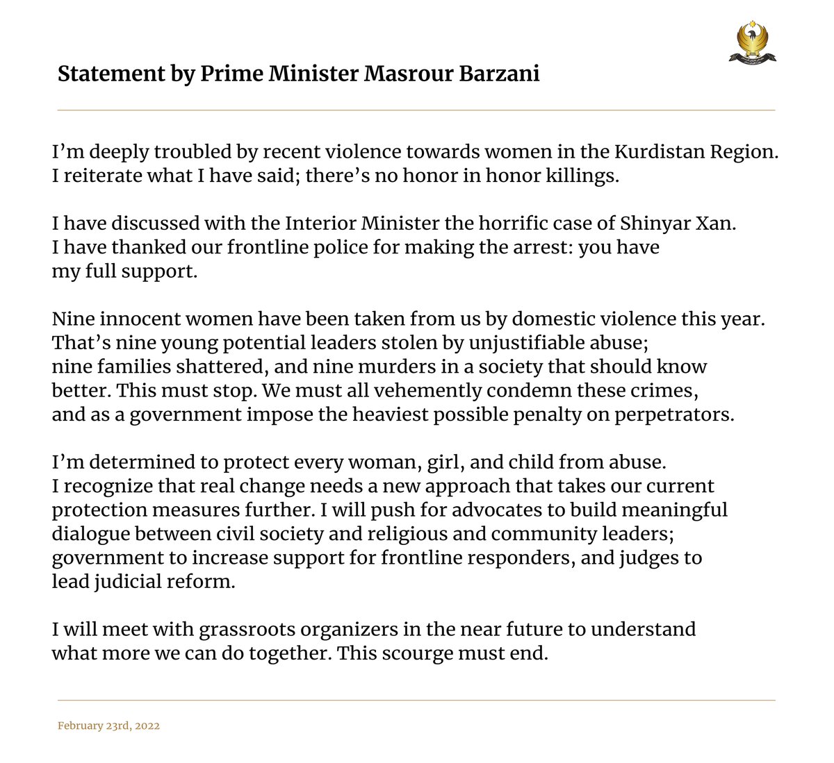 We need more male allies taking a stance against this scourgehttps://twitter.com/masrour_barzani/status/1496485749063098377 …