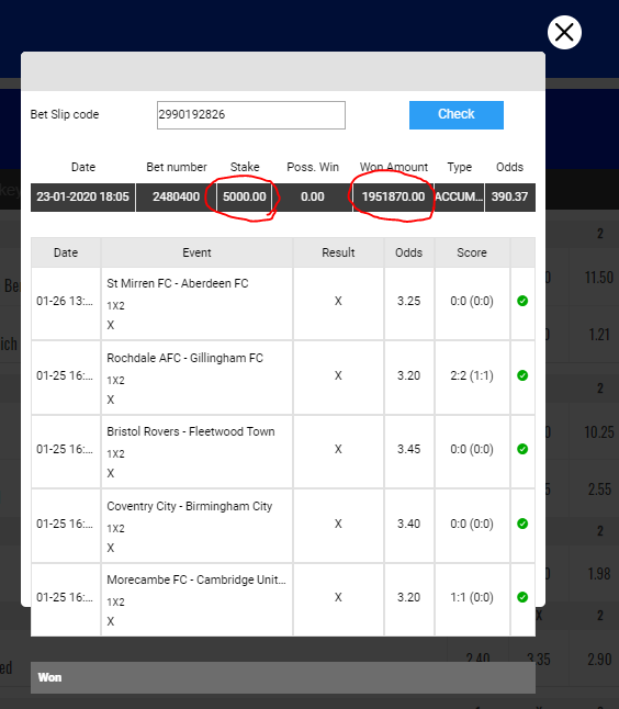 Betslip ID: 2990192826. Check Betslip ID by visiting http://www.nairabetshop.com and clicking "betslip check"