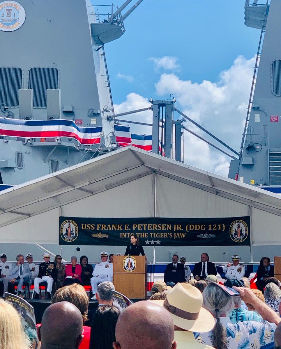 Spoke about the life and legend of Lt. Gen. Frank E. Petersen, Jr. during the missile destroyer commissioning ceremony. He was the first black Marine Corps General and aviator. May God bless the Petersen family and may God bless the United States of America. His legend lives on!pic.twitter.com/wwV53o4i4S