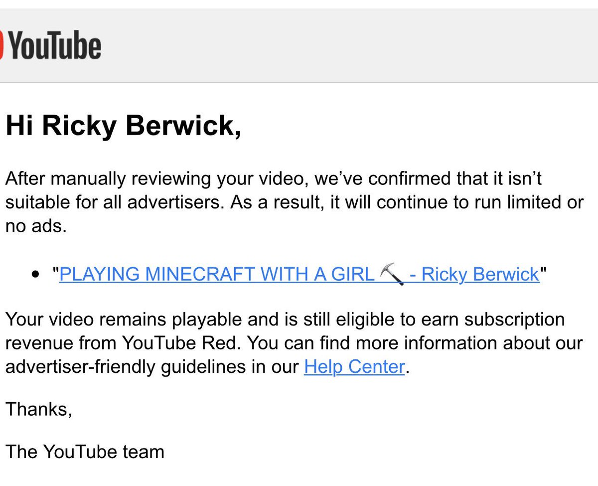 thanks for demonetizing my innocent minecraft video but monetizing that other video @TeamYouTube