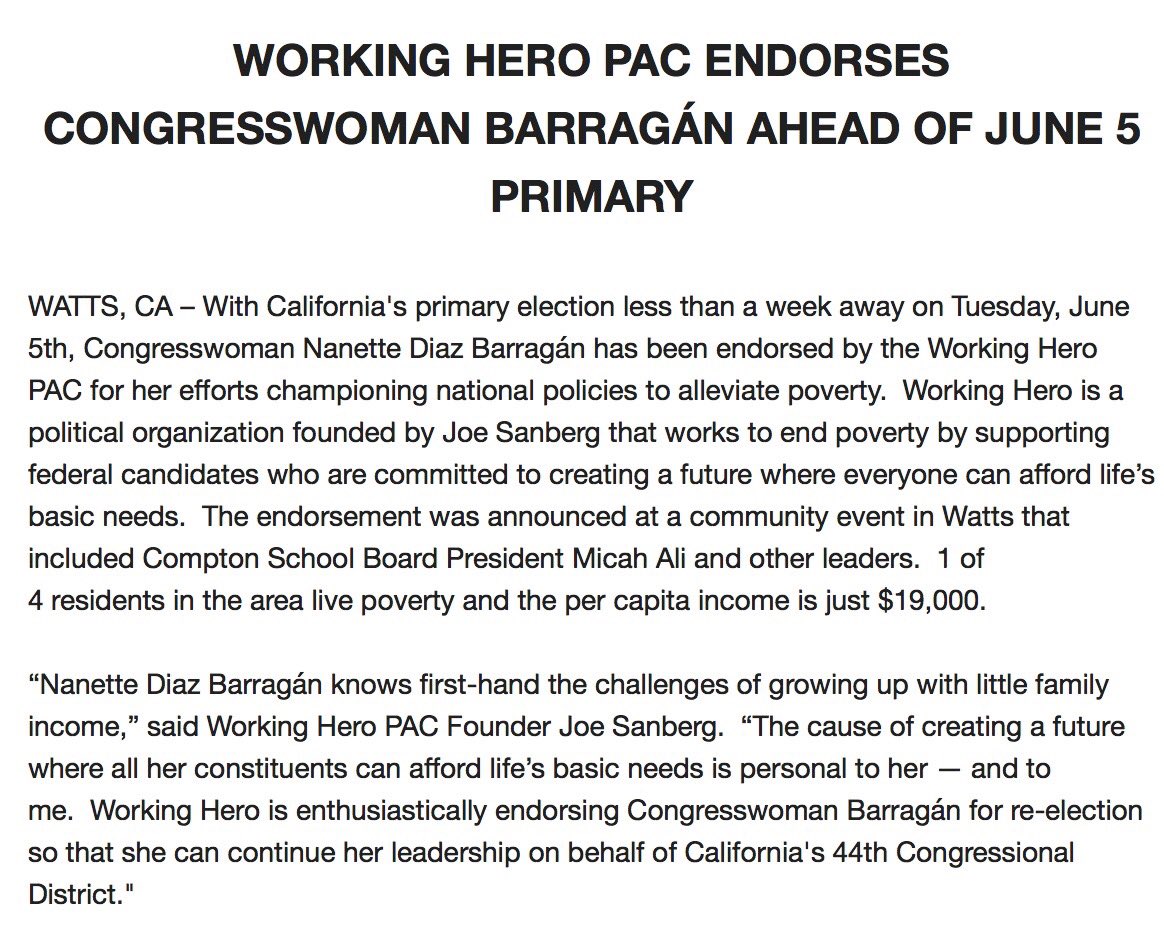 Proud to be endorsed by Working Hero PAC #CA44. Thanks @JosephNSanbergpic.twitter.com/1D4LCYSqXh