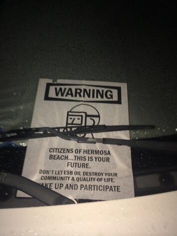 Last week I received booklet fr #oilandgas co. proposing to drill in #HermosaBeach. Today saw this on windshieldspic.twitter.com/uNkcL1WIpw