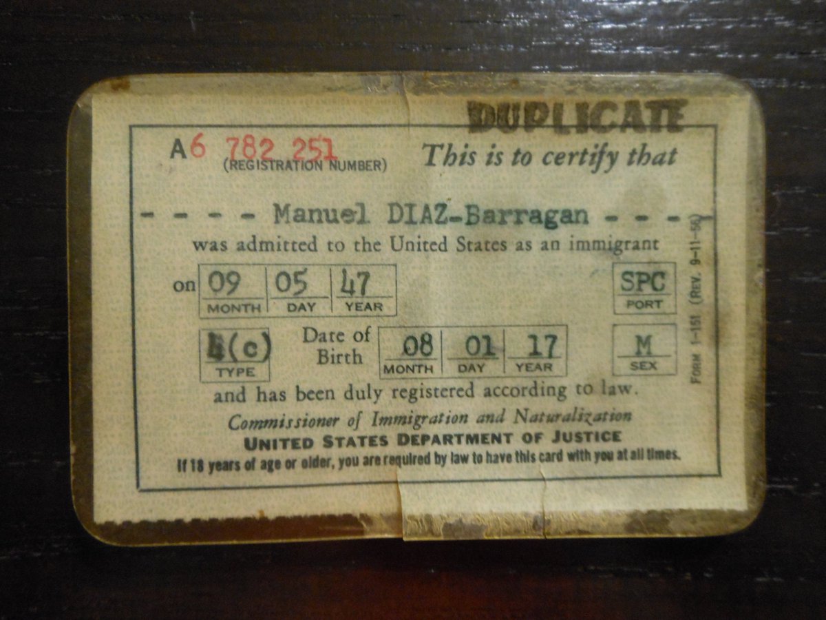 Reflecting on dad, Manuel DIAZ Barragan. Still have #immigration card. #MexicanIndependenceDay #LatinoHeritageMonthpic.twitter.com/dFoi7Lfpxy