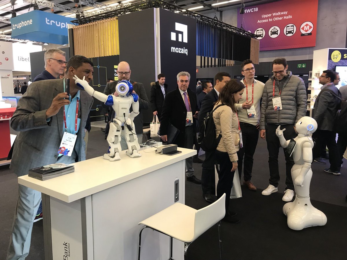 @NaoRobot just met a lot of people this morning on the#MWC18! Find us on@SBREurope's booth 8.0E11 - Hall 8.0.#MobileWorldCongress#MWC#robots#B2Bsolutionspic.twitter.com/GfbrnX5JCS