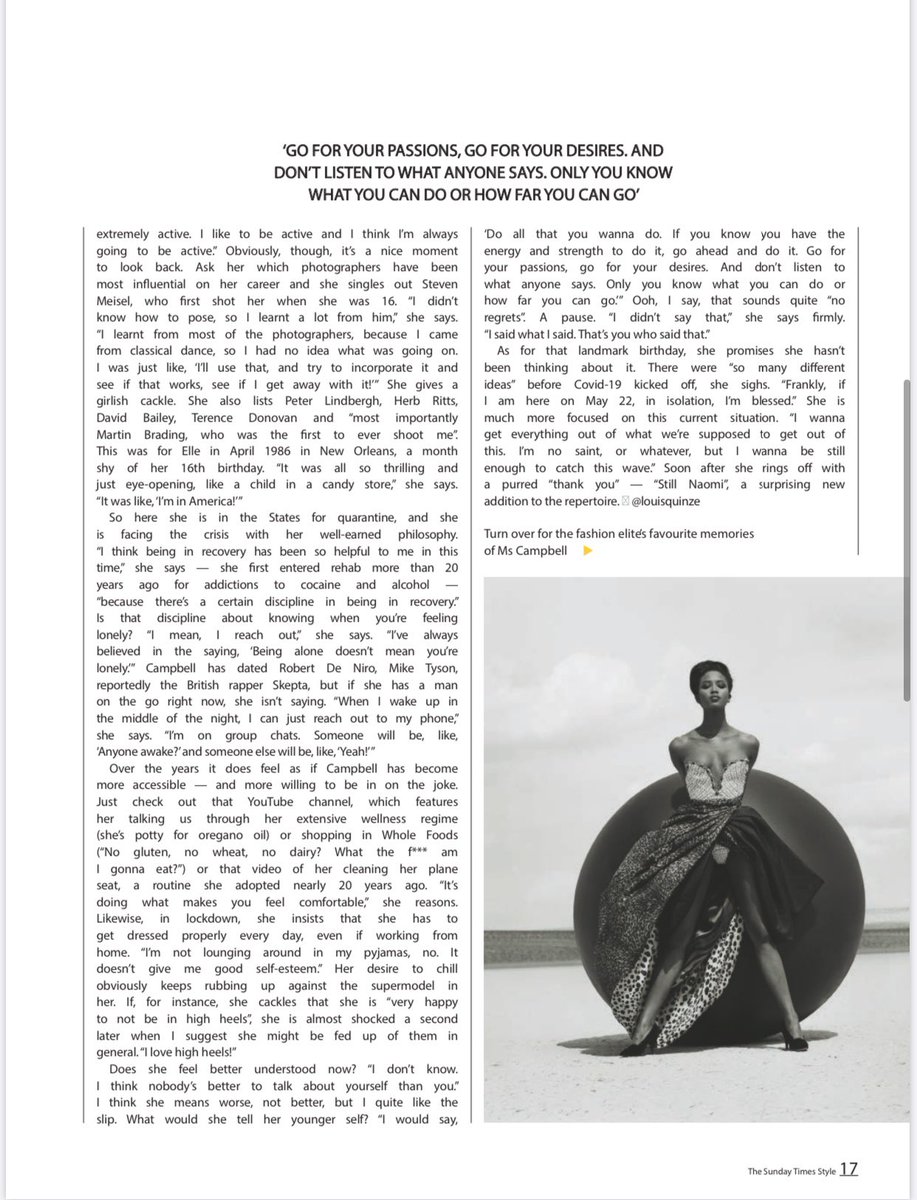 @NaomiCampbell made her groundbreaking entrance into modelling in 1986 and has been fighting to change the fashion world ever since.@louismwise rings the icon for a lively midnight phone call.https://www.thetimes.co.uk/edition/news/naomi-campbell-at-50-i-dont-like-the-word-retire-0s3hw2pqj?utm_medium=Social&utm_source=Twitter#Echobox=1588439775 …Merci. Twitter en tiendra compte pour améliorer votre fil. SupprimerSupprimer -