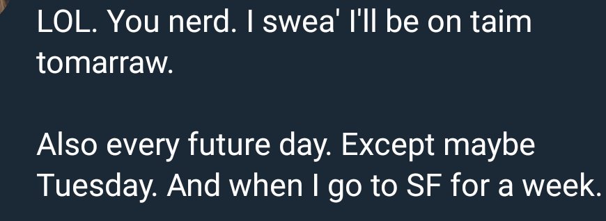Also this. Tuesdays are weird for me because of a scheduled LATE Monday night stream every week. So... Every day except Tuesday works 🐍pic.twitter.com/U0AbkmcDrR
