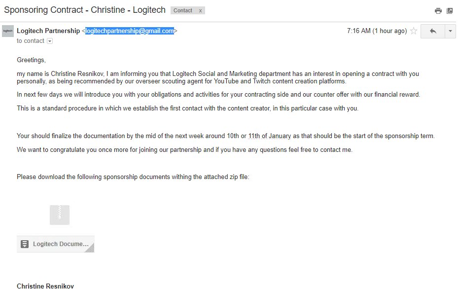 Beware phishing emails from logitechpartnership@gmail.com They are not actually from Logitech They want dabooty Or they might have much more insidious intentions