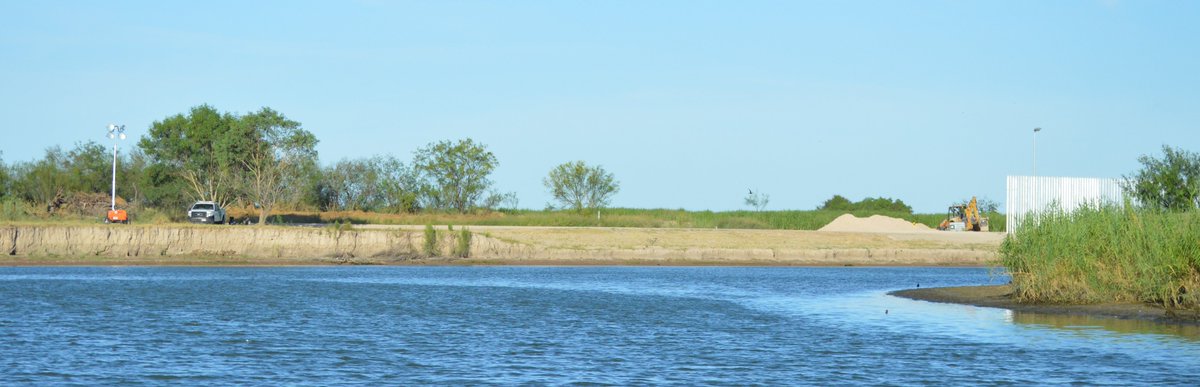 Another view of the Fisher + #WeBuildtheWall project that connects to nothing. They eliminated the 8' riverbank in favor of a beach that's eroding. On the MX side they are building a 4' rising concrete, steel & stone retaining wall to protect against erosion & land loss.pic.twitter.com/hbvcQ3kS0u