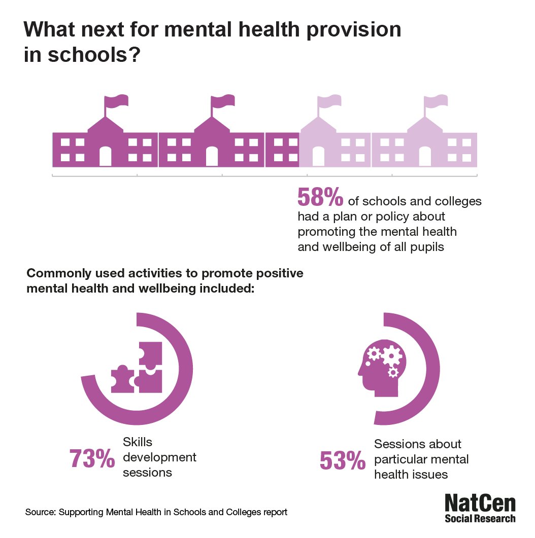 #MentalHealthInSchools research found that 58% of schools & colleges had plans in place to promote the mental health and wellbeing of all pupils. Read the full report here: https://www.gov.uk/government/uploads/system/uploads/attachment_data/file/634726/Supporting_Mental-Health_survey_report.pdf …pic.twitter.com/jC8NfjZNu1