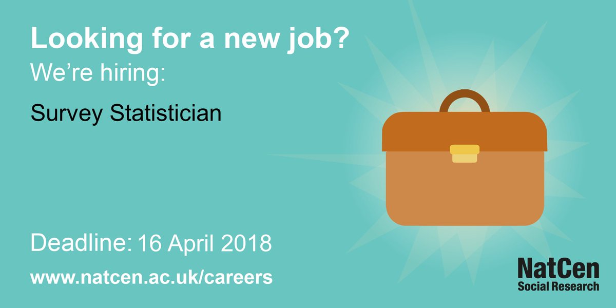 Are you an experienced, talented Survey Statistician? Then we'd love you to join our team at NatCen. Apply by 16 April: http://www.natcen.ac.uk/careers/job-opportunities/survey-statistician/ …