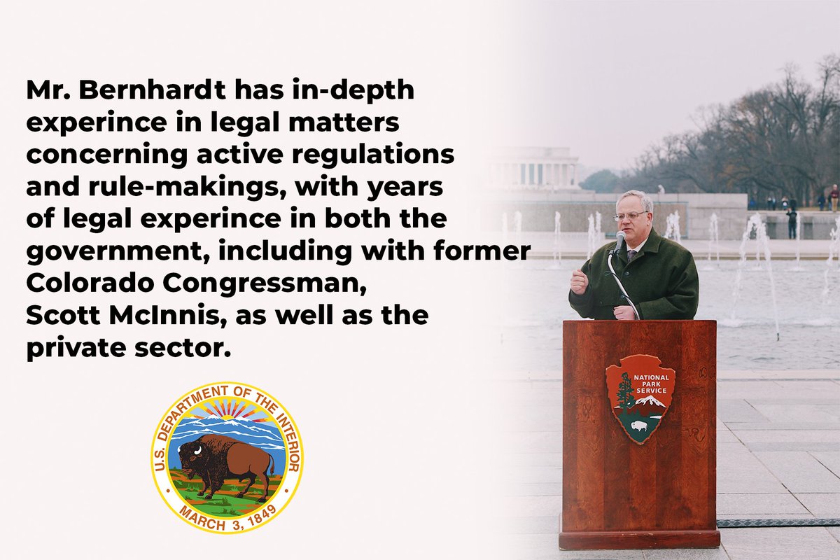 The legal background of @DOIDepSec Mr. Bernhardt is already showing, the @Interior under his leadership has hired more ethics officials than the Obama Administration did in eight years to ensure integrity and compliance. #ConfirmBernhardtpic.twitter.com/QV5QbzjVg7