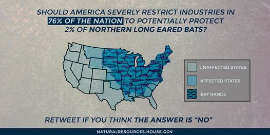 America should not restrict industries in 39 states to protect 2% of Northern Long Eared Bats. RETWEET if you agree!pic.twitter.com/6cbp5o48Qa