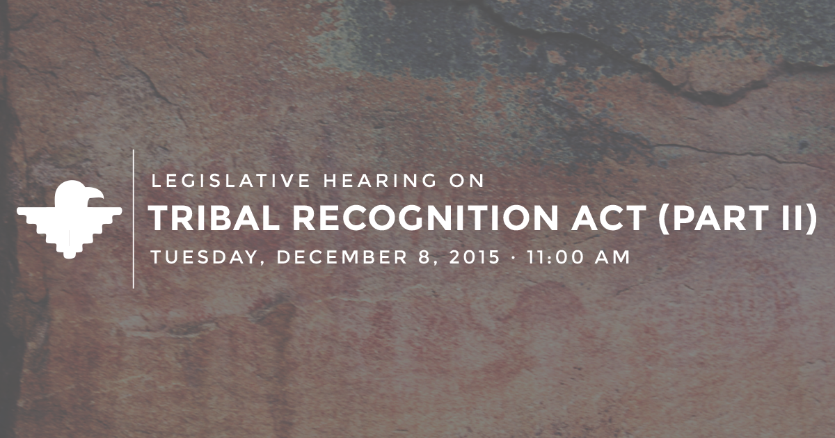 LIVE: Legislative Hearing on Tribal Recognition Act (Part II). http://1.usa.gov/1NIQNlb pic.twitter.com/hLHLL82eiY