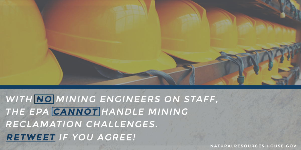 With no mining engineers on staff, the #EPA is unable to handle mining reclamation challenges. RETWEET if you agree!pic.twitter.com/V7B7OCvVbf