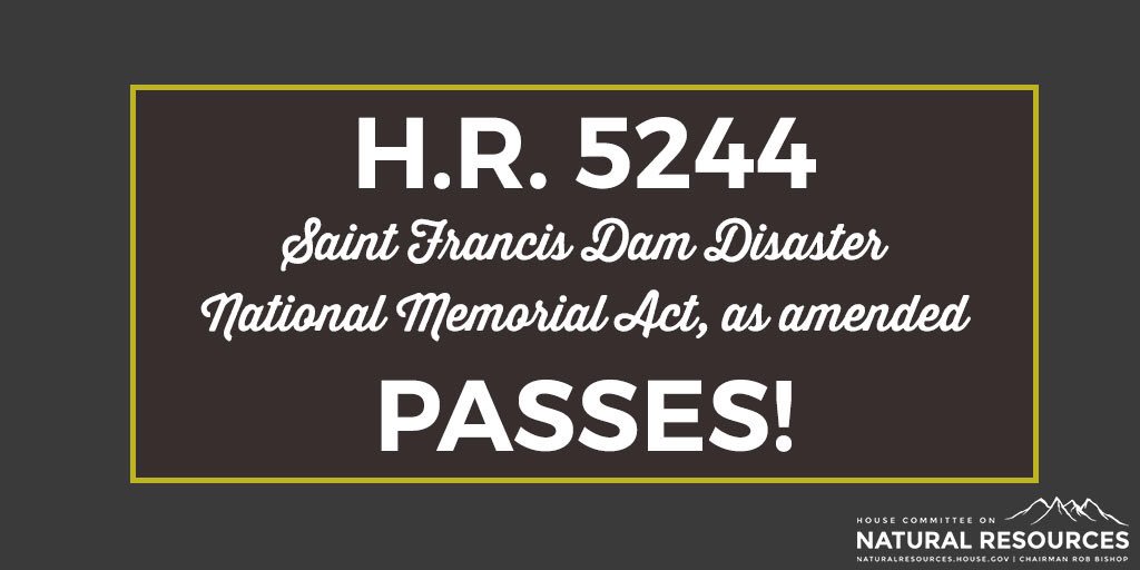 With a voice vote, H.R. 5244 the Saint Francis Dam Disaster National Memorial Act passes!pic.twitter.com/SOU6ij1k3u