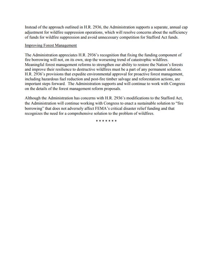 The White House doesn't even like the GOP wildfire fix. thttps://www.whitehouse.gov/sites/whitehouse.gov/files/omb/saphr2936hr_20171031.pdfpic.twitter.com/YDElodYdOM