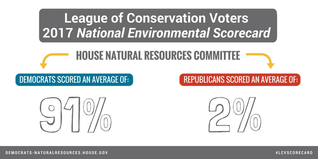 Dems on the Committee are united in the fight against the Trump admin’s relentless attacks on the environment and public health. #LCVScorecard proves Republicans on @NatResources are working to sell out our future to wealthy corporate polluters. More → http://scorecard.lcv.org pic.twitter.com/9jyi6UfMbk