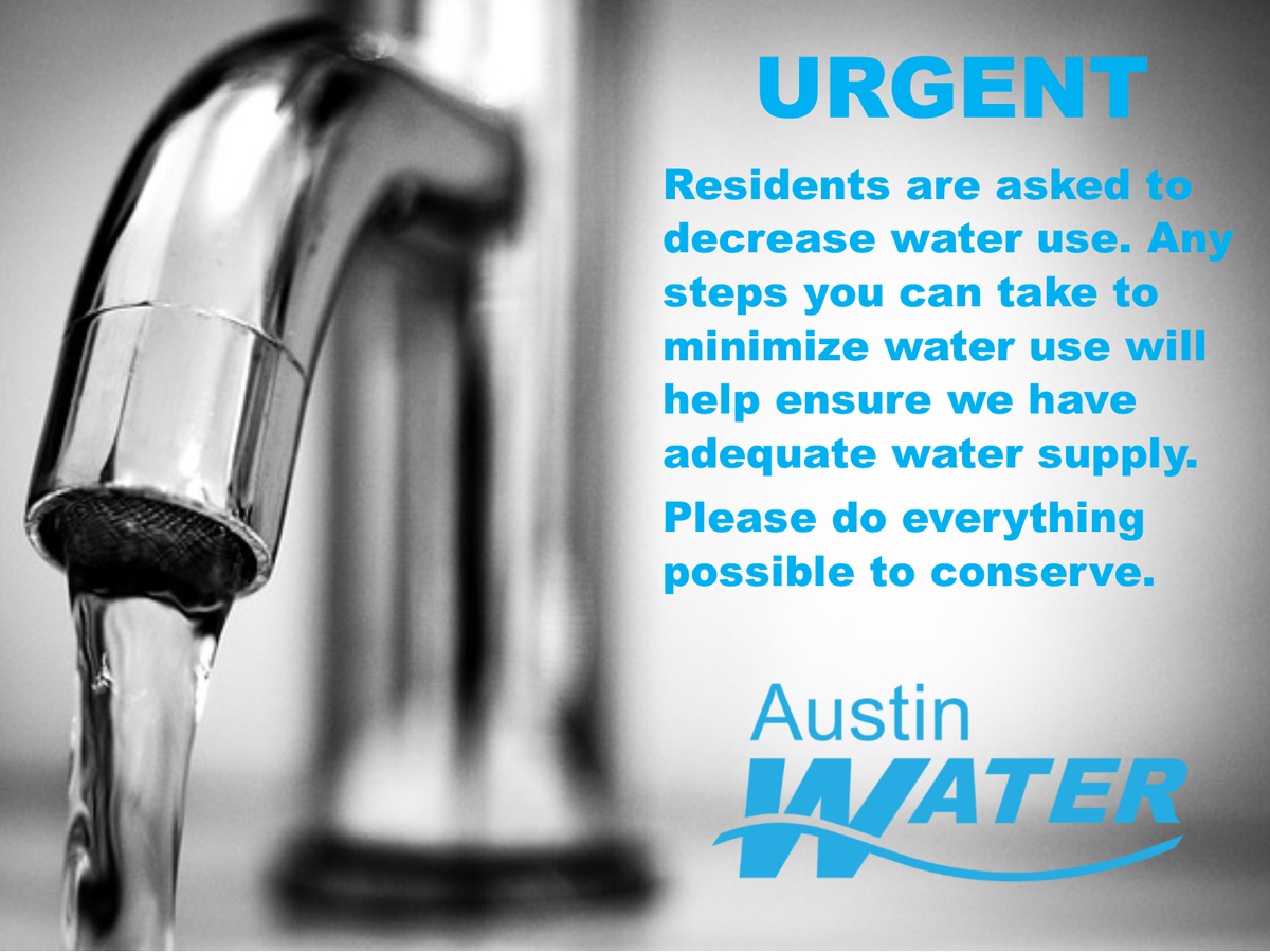 Urgent: Residents are asked to decrease water use. Any steps you can take to minimize water use will help ensure we have adequate water supply. Please do everything possible to conserve. http://ow.ly/4ZYM30mjH5p pic.twitter.com/hF9aUYNOeg