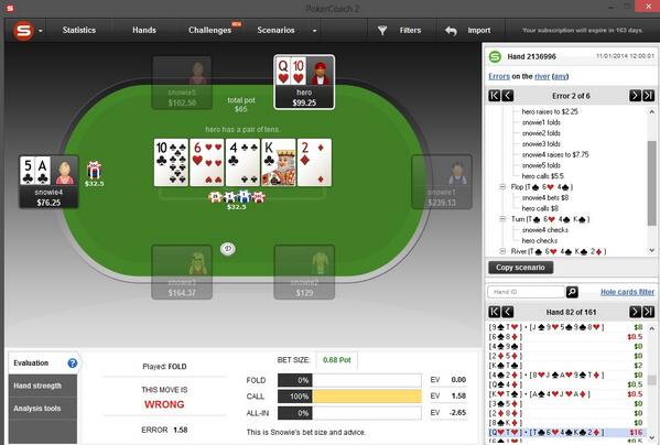 @NateMeyvis @thinkingpoker @PokerSnowie I looked at the bettor's range & 85% of it beats a pair of tens in this spot. A call here seems bad.