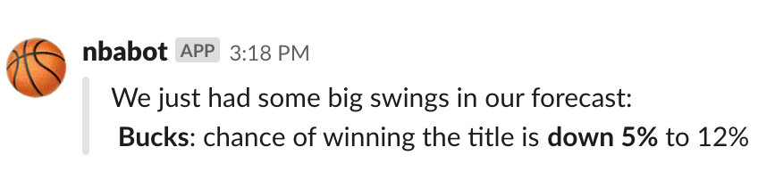 Bucks are still 60/40 to win the series but that was *not* a good result for them. https://projects.fivethirtyeight.com/2019-nba-predictions/ …pic.twitter.com/bFoCpwirC3