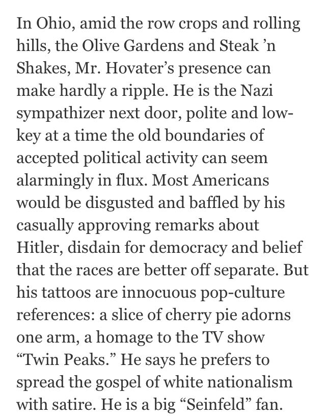 The NYT went much further than to point out that they look "normal" though. They presented their extreme disgusting views without criticism, treating them with kid gloves as something less than toxic. The article lends itself a very humanizing tone to hate