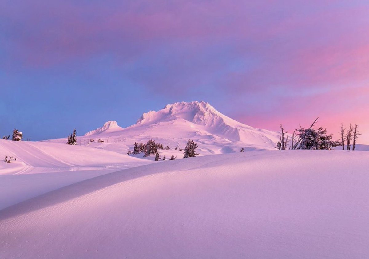 This cotton candy colored sky with Mt. Hood is dreamy! Taken pre-sunrise from Timberline Lodge by Instagrammer 7b_kirk!