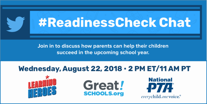 The #ReadinessCheck chat is only 30 mins away! Join us, @BeALearningHero, @GreatSchools, and others to learn how to help parents know what’s expected of their child this year and how to start the year off strong as kids head back to school #PTABack2School #ptchatpic.twitter.com/Hb3w4Wz8q5