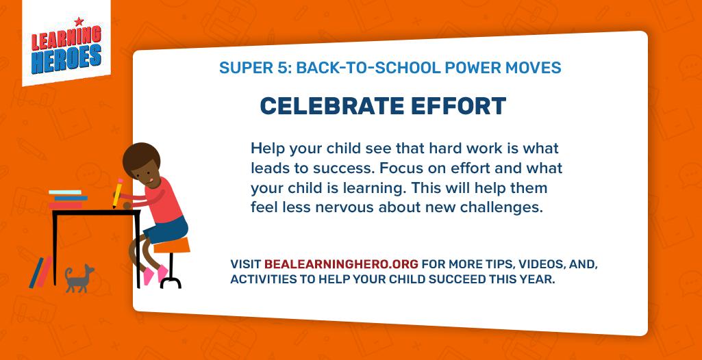 Help your child see hard work leads to success. Focus on effort and what your child is learning to help them feel less nervous about new tasks! More free resources to help support this life skill and others at https://bit.ly/2LaG2Aq pic.twitter.com/IDpOJDwLkt