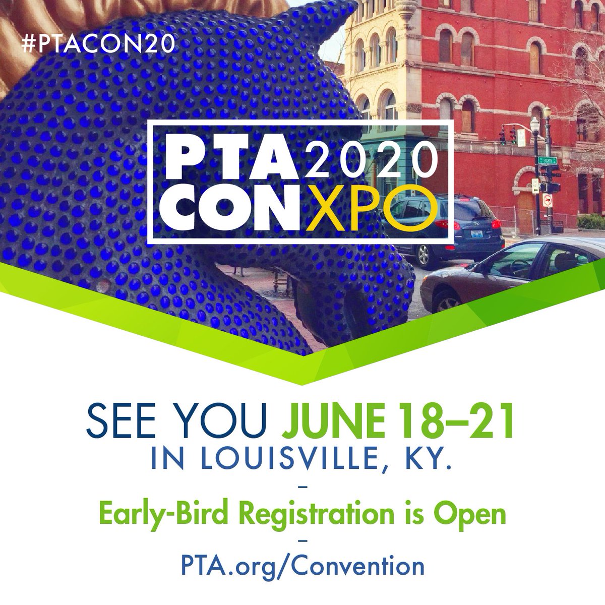 Early Bird Registration is still open for the National PTA Convention & Expo in Louisville, Ky. #PTACON20 http://pta.org/convention pic.twitter.com/BvlvPQHaXt