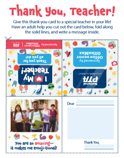 It’s easy to #ThankATeacher! Use our thank-you cards, certificates, flyers, web ads and social media graphics at http://PTA.org/ThankATeacher pic.twitter.com/N47FGY5OaB