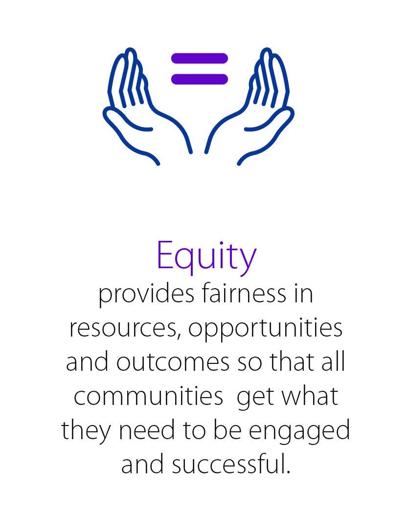 Equity provides fairness in resources, opportunities and outcomes so that all communities get what they need to be engaged and successful. We Believe Equity Drives Our Mission…We seize opportunities to build and share new models and ways of working on behalf of children.pic.twitter.com/3S7Hc7WWJu