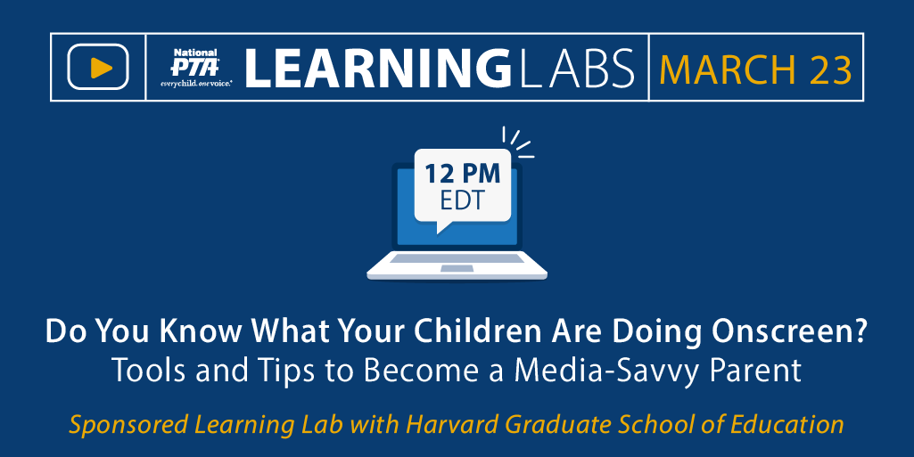 Join our next Learning Lab session with @hgse on March 23 at 12PM ET for tools and tips for becoming media-Savvy parents. RVSP now here https://pta.zoom.us/webinar/register/WN_2F_ZIZxRT7m3bKMDWRnXWw …pic.twitter.com/tnY0VmDHBe