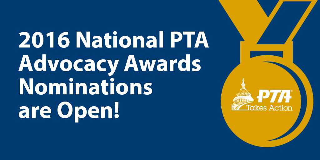 Nominate an advocate or association for one of National PTA's four advocacy awards today http://bit.ly/1KZUDIl pic.twitter.com/pbQ4wBrFQf