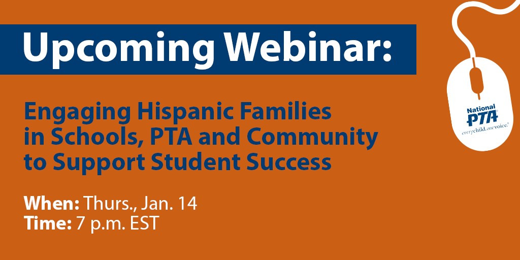#Webinar: Engage Hispanic Families in Schools, PTA & Community to Support Student Success http://bit.ly/1Z1eTOe pic.twitter.com/luQE7S6pIu
