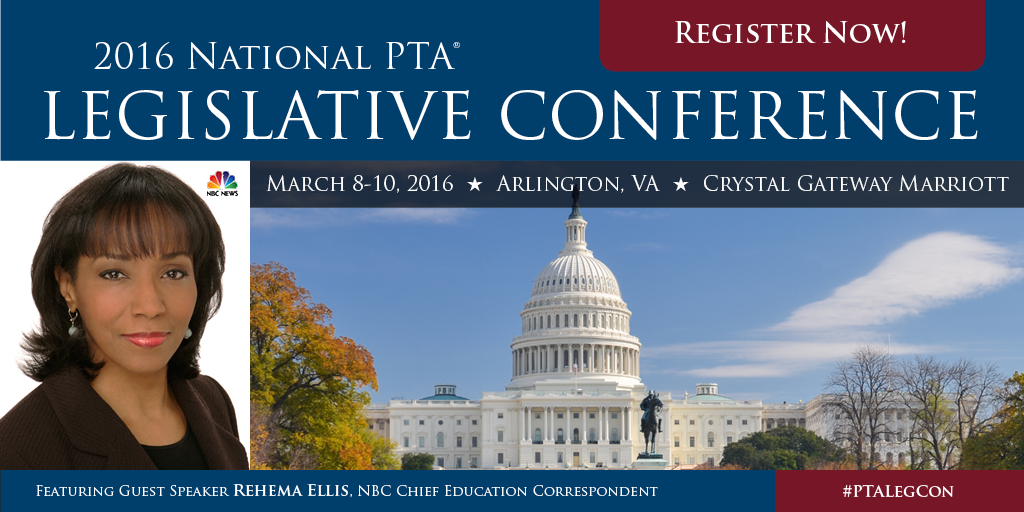 Register for @NationalPTA's 2016 #PTALegCon featuring NBC News's @rehemaellis. More details http://bit.ly/1RSSaUg pic.twitter.com/gfB5NzR2bS