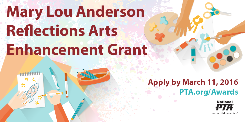 Learn more about the @NationalPTA Mary Lou Anderson Reflections Arts Enhancement Grant to support local PTAspic.twitter.com/PUzKpYUBMc