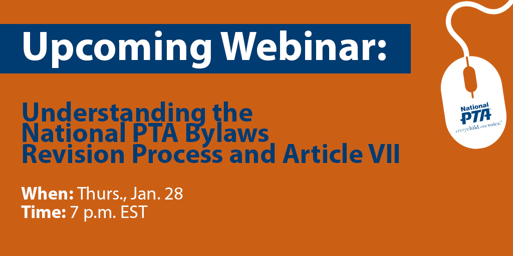 Want to learn more about the @NationalPTA Bylaws? You can register for our 3-part series http://bit.ly/1W7AjJC pic.twitter.com/4L3P4TimB1
