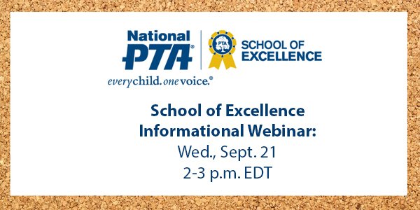 Want to become the next #PTAExcellence School? Learn more in our webinar next week! http://bit.ly/2cVB9tm pic.twitter.com/5WGgddWuYM