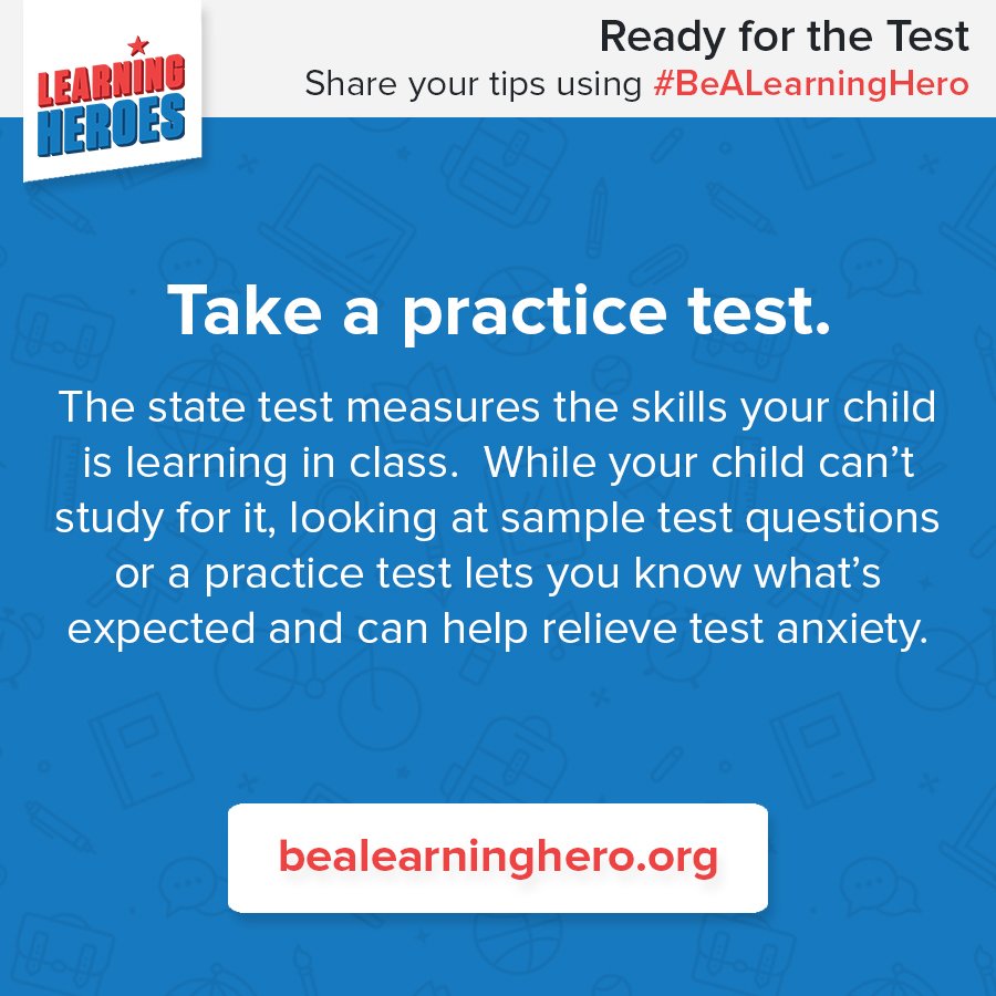 #ParentTips: Help your child prepare by looking over your state’s practice test here: http://bit.ly/2n7Tbxq #bealearninghero #sppic.twitter.com/nRKMY6Juk8