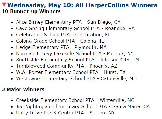 Congratulations to all the #ThankATeacher Contest major & runner-up @HarperChildrens winners! http://www.pta.org/programs/teacherappreciation.cfm?ItemNumber=5181&navItemNumber=5184 …pic.twitter.com/UAG0CXLzmk