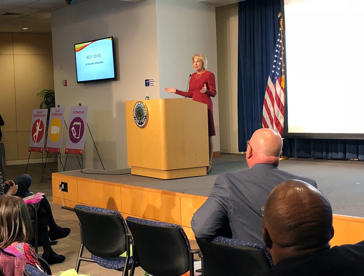 .@BetsyDeVosED stopped by today’s #PTAReflections Showcase to emphasize the importance of arts in education to PTA families and students from across the country.pic.twitter.com/sotuDLmqI3